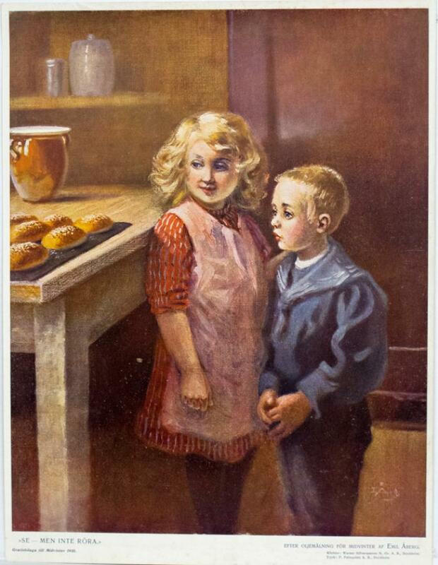 Reproduktion. Se - men inte röra. Efter oljemålning av Emil Åberg