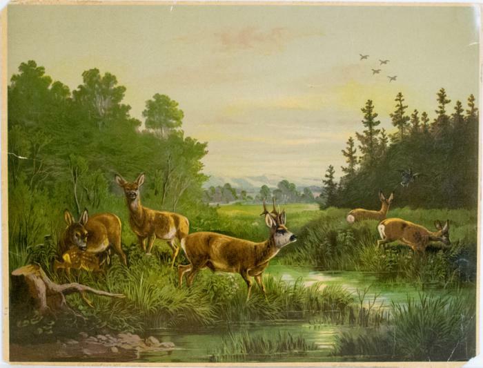 Konstblad. Motiv med rådjur.