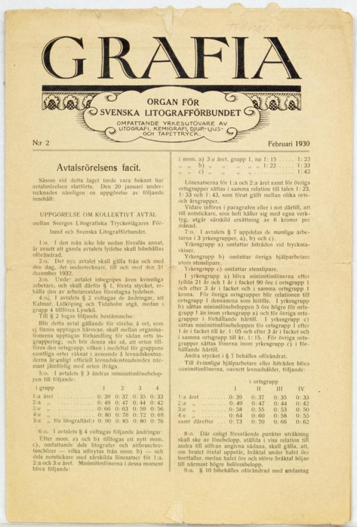 Omslag. Grafia. Organ för svenska litografförbundet. 1930