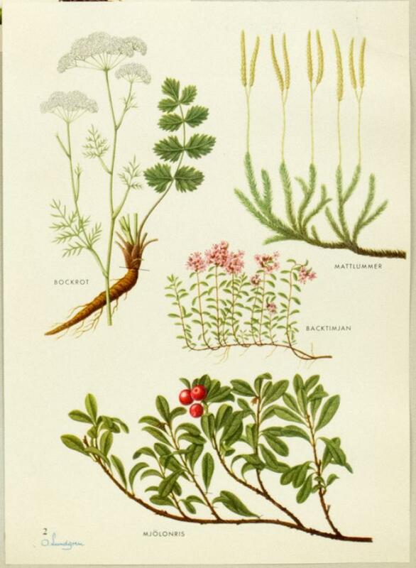 Plansch. Bockfot, Mattlummer, Backtimjan, Mjölonris.