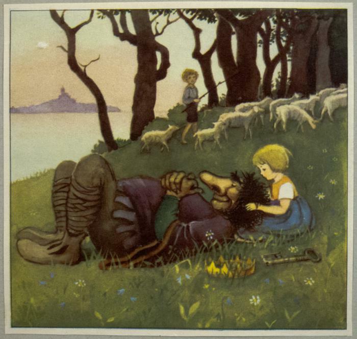 Vykort. Motiv med troll och flicka