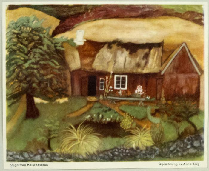 Vykort. Anna Berg. Stuga från Hallandsåsen