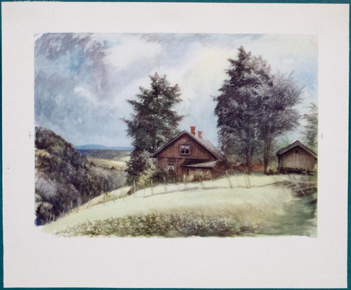 Illustration. Hus på kulle