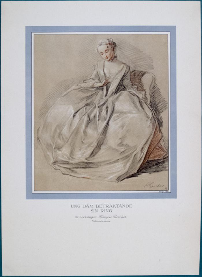 Reproduktion. François Boucher. Ung dam betraktande sin ring