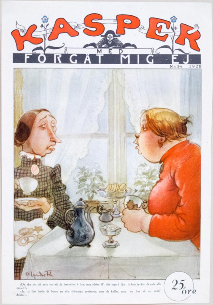 Omslag. Kasper med Förgät mig ej. Nr 34 1928. Per Lindroth.