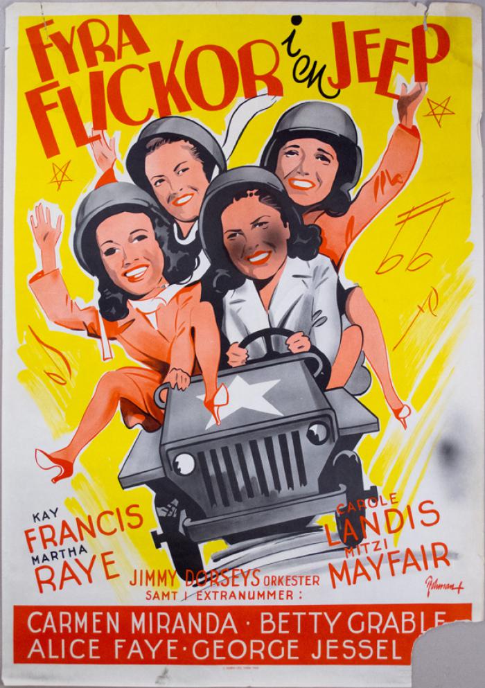 Affisch. Fyra flickor i en jeep (Eric Rohman)