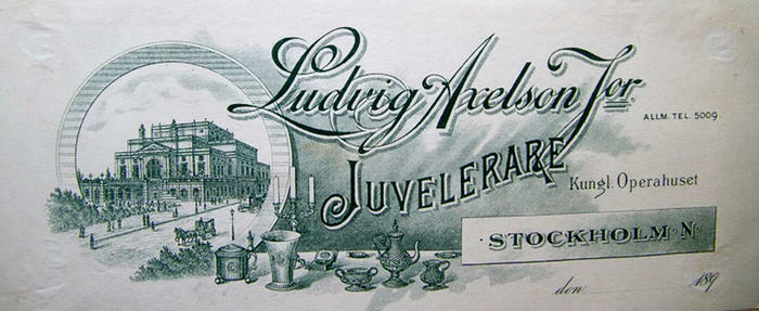 Fakturahuvud. Ludvig Axelson Jor. Juvelerare, Operahuset, Stockholm