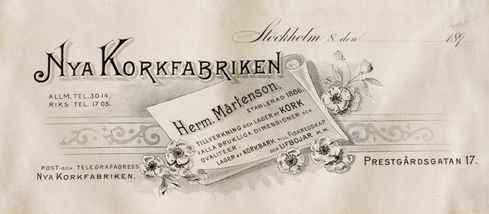 Fakturahuvud. Nya Korkfabriken, Stockholm