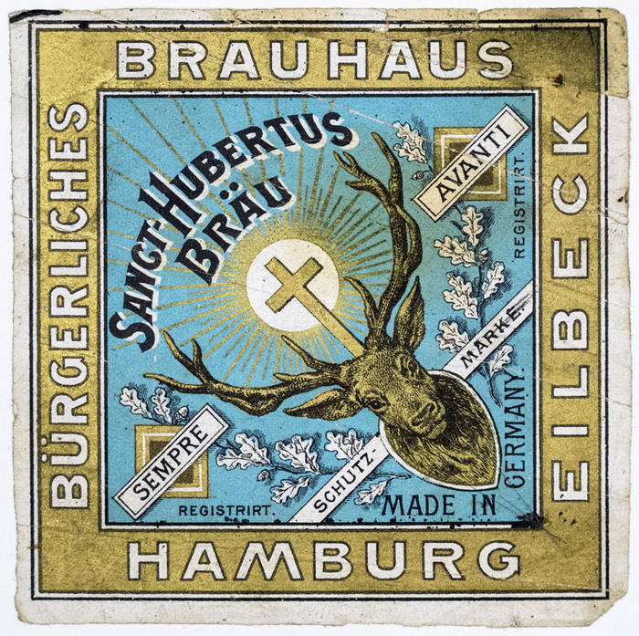 Etikett. Sanct-Hubertus Bräu. Bürgerliches Brauhaus Hamburg
