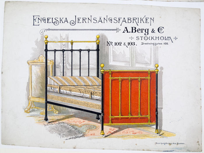 Reklamtryck. Engelska Jernsängsfabriken A. Berg, Stockholm