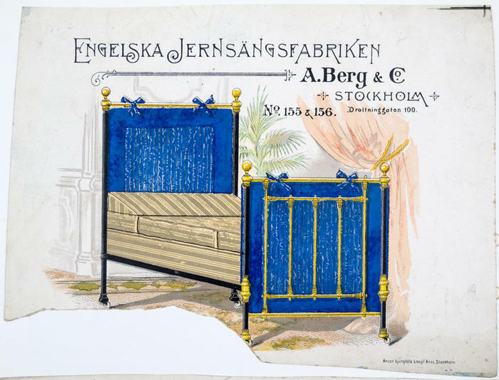 Reklamtryck. Engelska Jernsängsfabriken A. Berg & Co Stockholm
