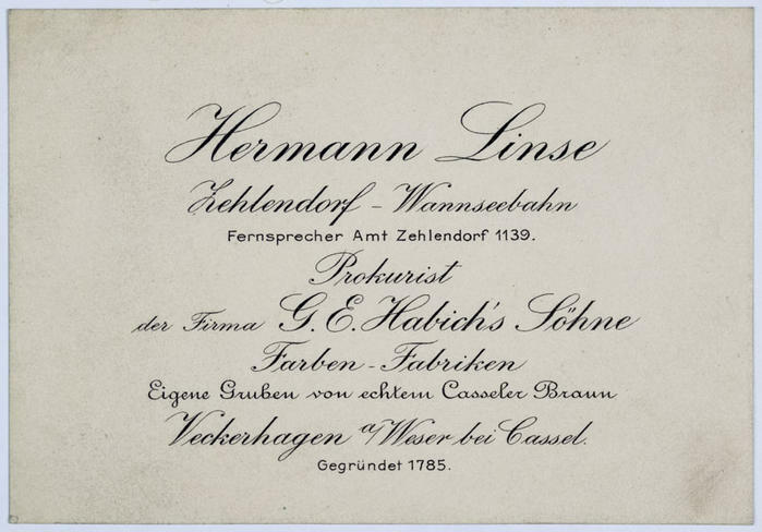 Visitkort. Hermann Linse, Seehlendorf – Wannseebahn