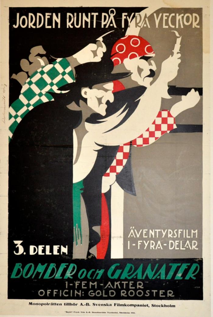 Affisch. Jorden runt på fyra veckor. Del 3: Bomber och granater. (Hugo Lindblad)