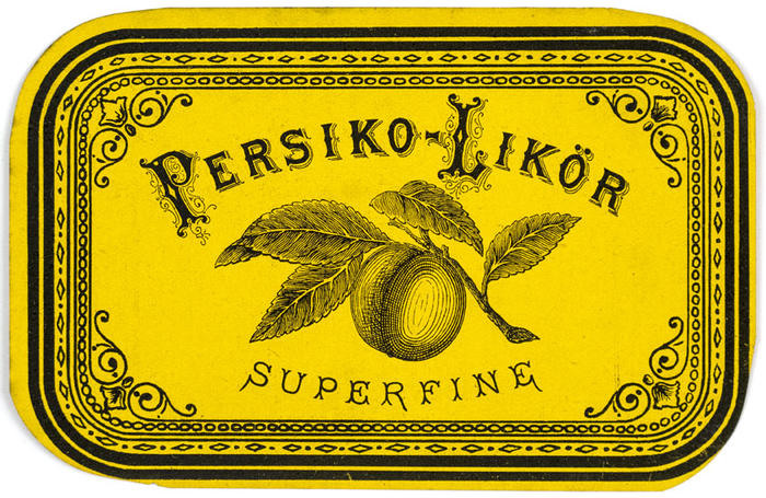Etikett. Persiko-Likör Superfine