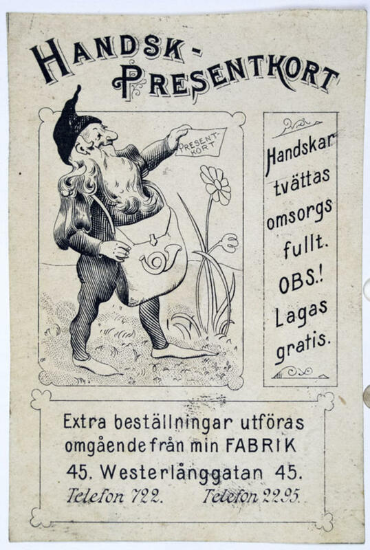 Reklamtryck. Handskfabrik, Västerlånggatan 45, Stockholm