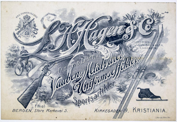 Reklamtryck. L. H. Hagen & Co. Fabrik & lager av vaaben, metalvarer, uniformseffekter. Oslo