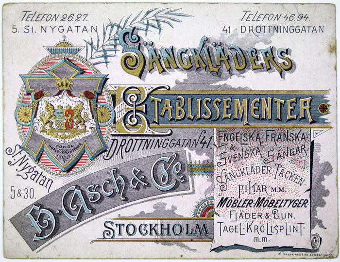 Reklamtryck. H. Asch & Co. Sängkläders Etablissementer, Stockholm