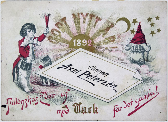 Vykort. Godt Nytt År 1892! Vännen Axel Peterzén