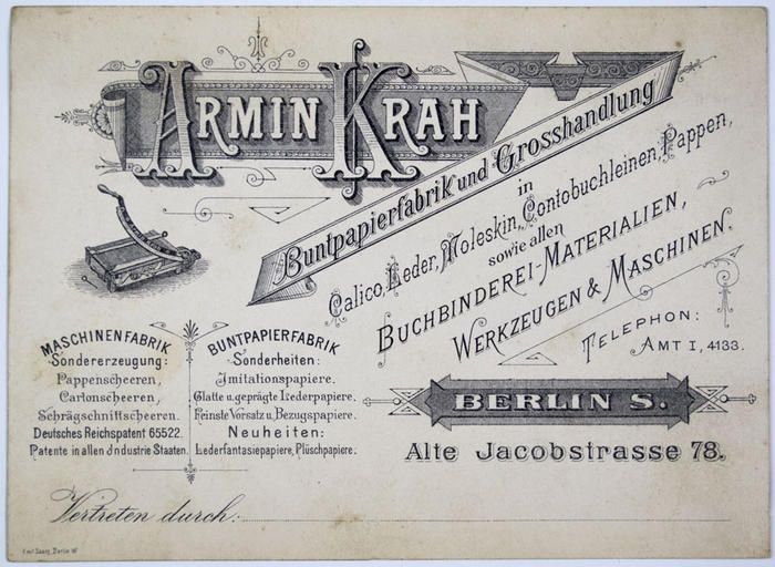 Reklamtryck. Armin Krah, Berlin. Buntpapier und Grosshandlung, Berlin