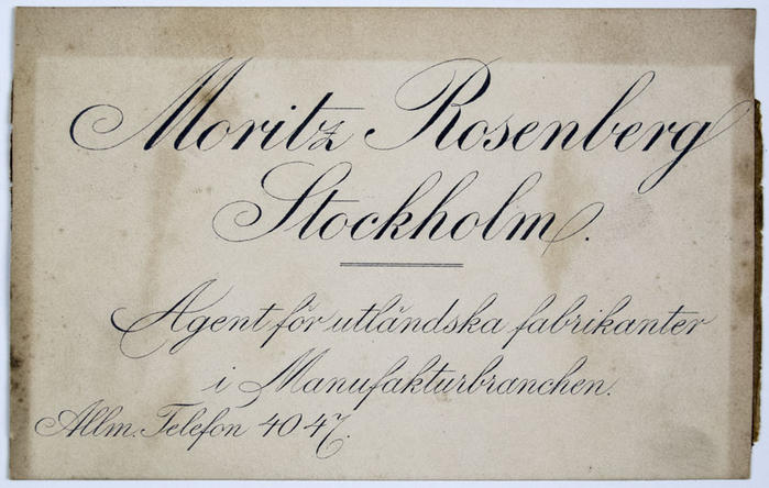 Reklamtryck. Moritz Rosenberg Stockholm. Agent för utländska fabrikanter i Manufakturbranschen