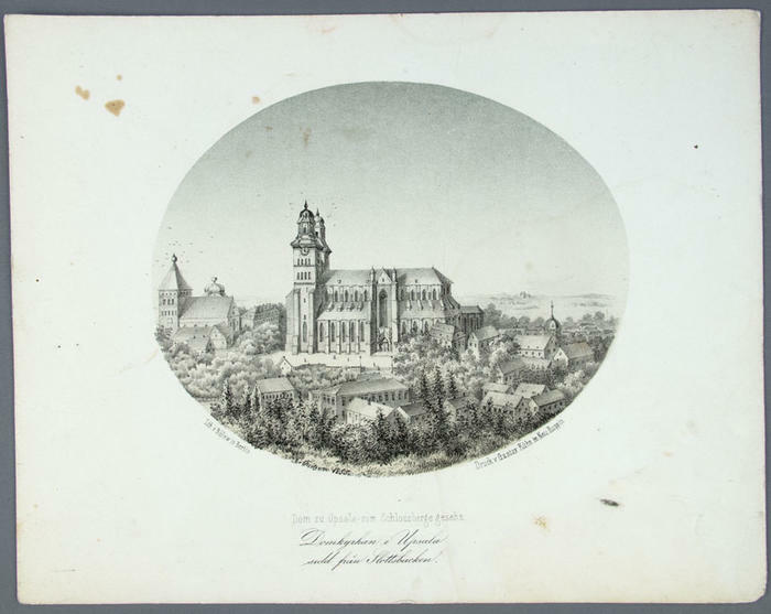 Konstblad. E. von Quitzow, Domkyrkan i Uppsala sedd från Slottsbacken