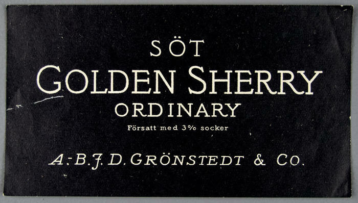 Etikett. Golden sherry. A.B. J.D.Grönstedt & Co