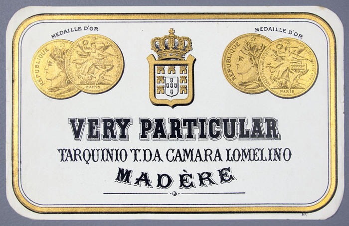 Etikett. Very particular Madère. Tarquinio T.D.A. Camara Lomelino