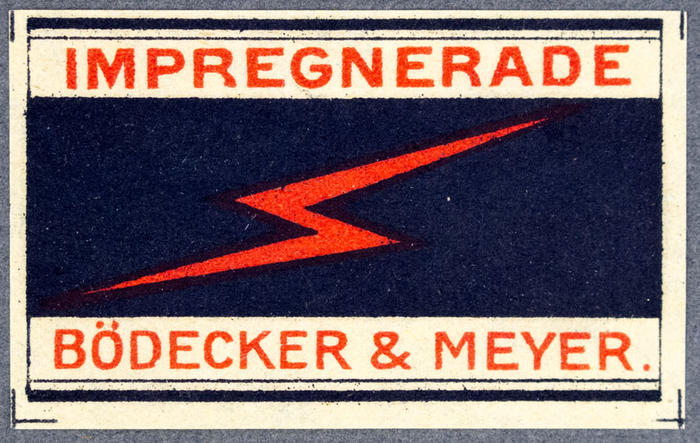 Tändsticksetikett. Impregnerade. Bödecker & Meyer