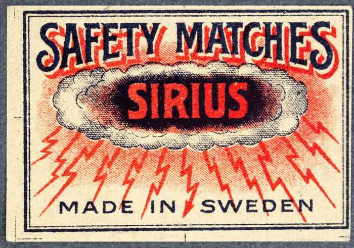 Tändsticksetikett. Sirius. Safety matches