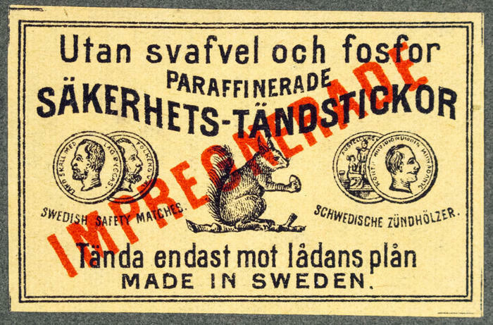 Tändsticksetikett. Impregnerade säkerhetständstickor