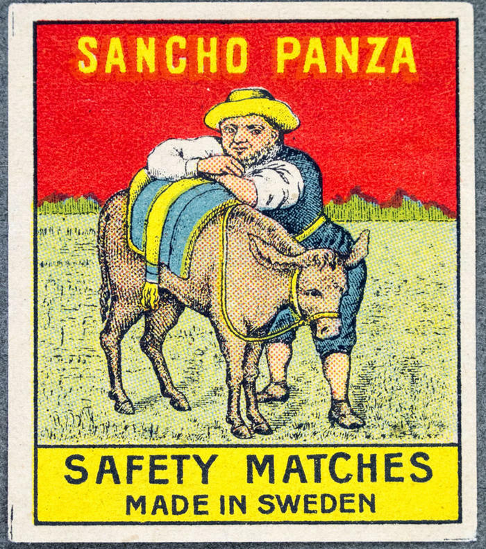 Tändsticksetikett. Sancho Panza. Safety matches