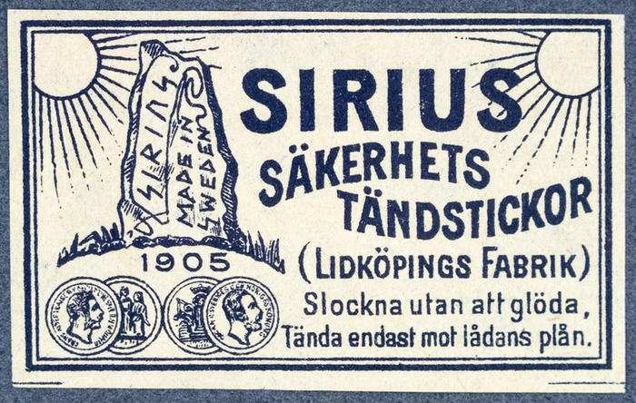 Tändsticksetikett. Sirius säkerhetständstickor