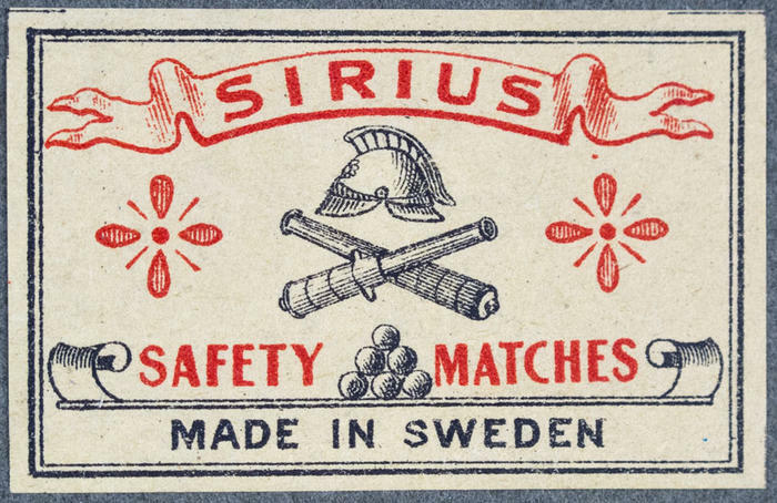 Tändsticksetikett. Sirius Safety Matches
