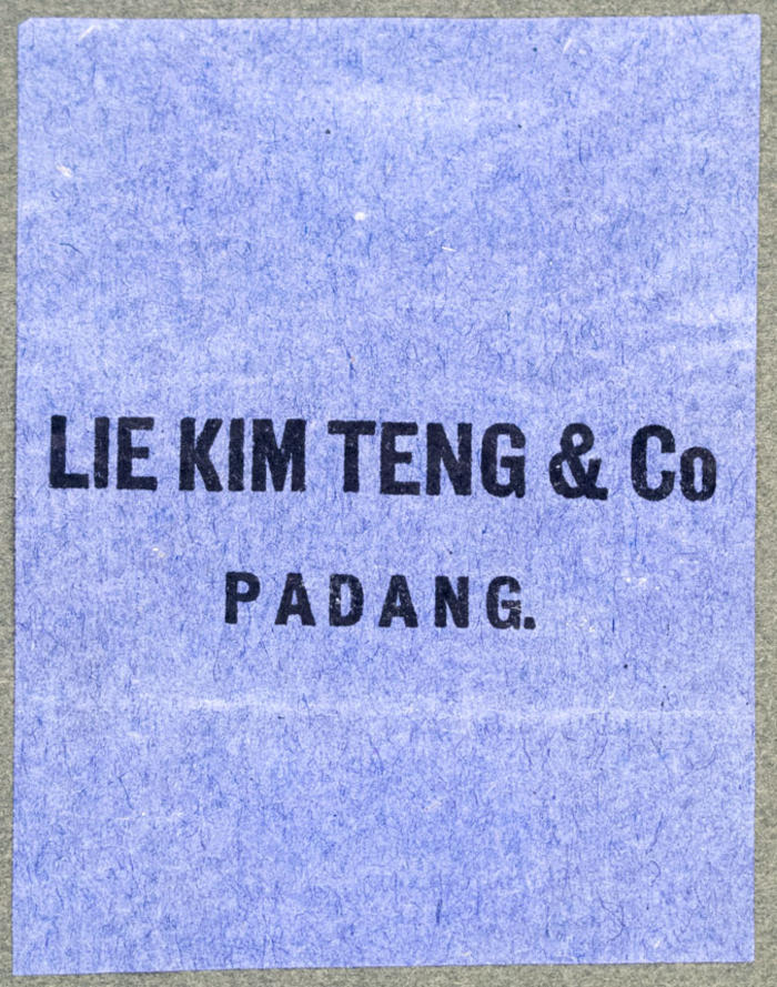 Tändsticksetikett. Lie Kim Teng & Co Padang