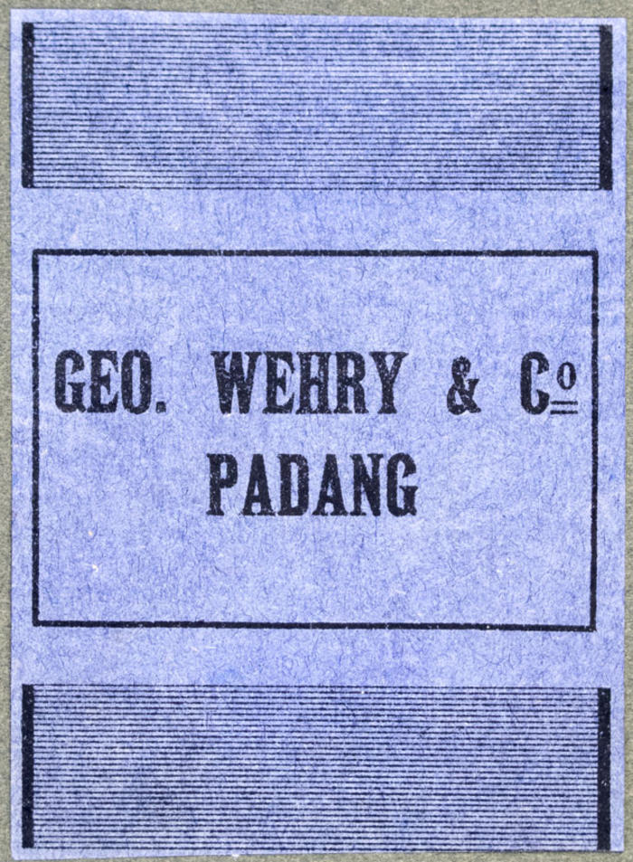 Tändsticksetikett. Geo. Wehry & Co, Padang