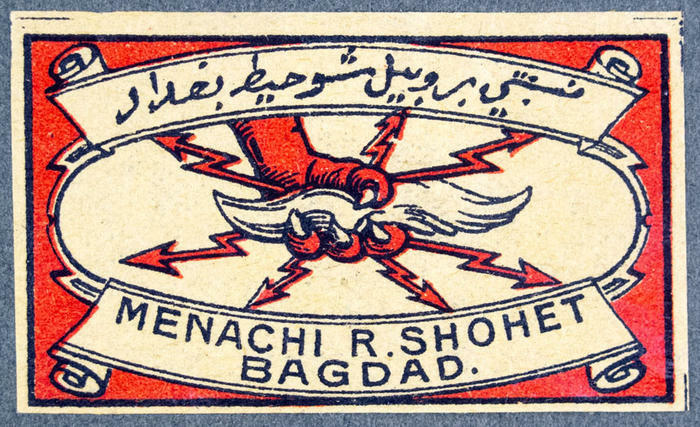 Menachi R.Shohet Bagdad. Tändsticksetikett