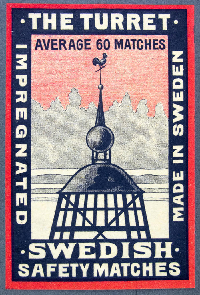 The Turret. Swedish Safety Matches. Tändsticksetikett