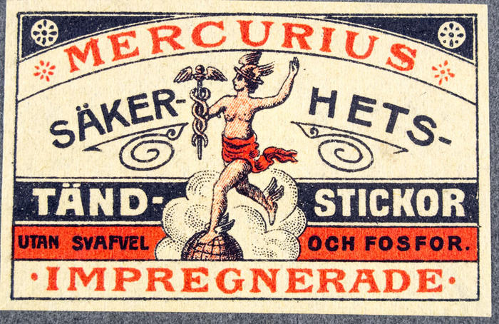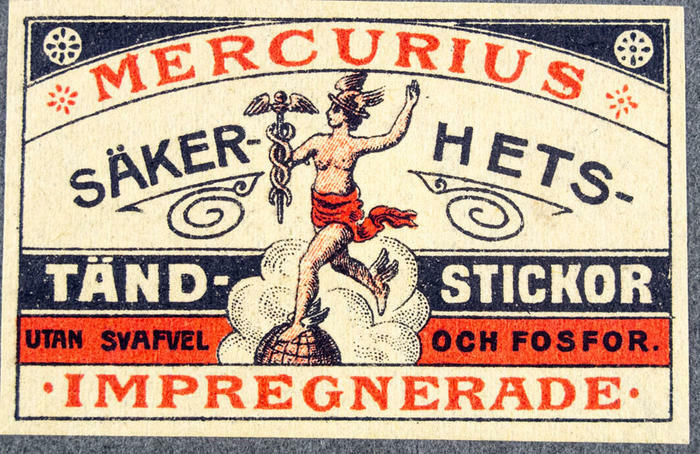 Tändsticksetikett. Mercurius