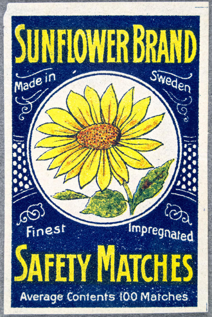 Tändsticksetikett. Sunflower Brand