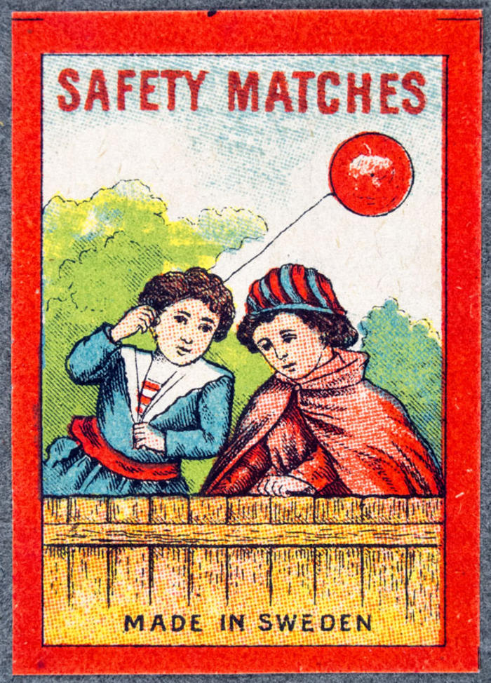 Tändsticksetikett. Safety matches