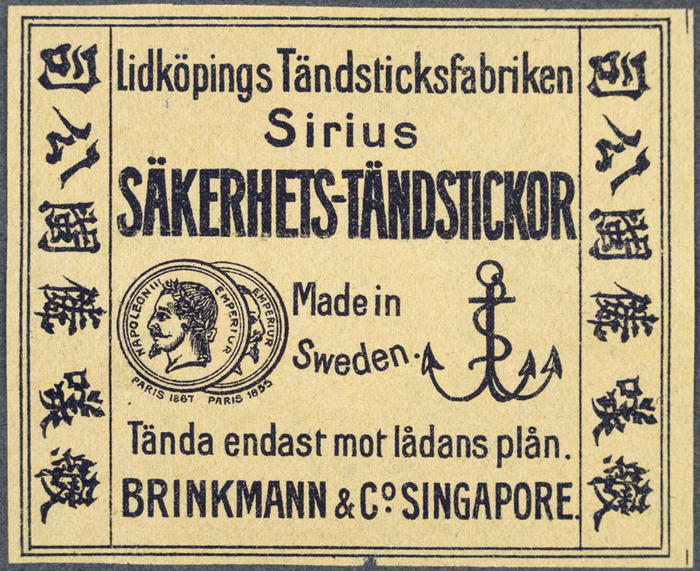Tändsticksetikett. Sirius säkerhetständstickor