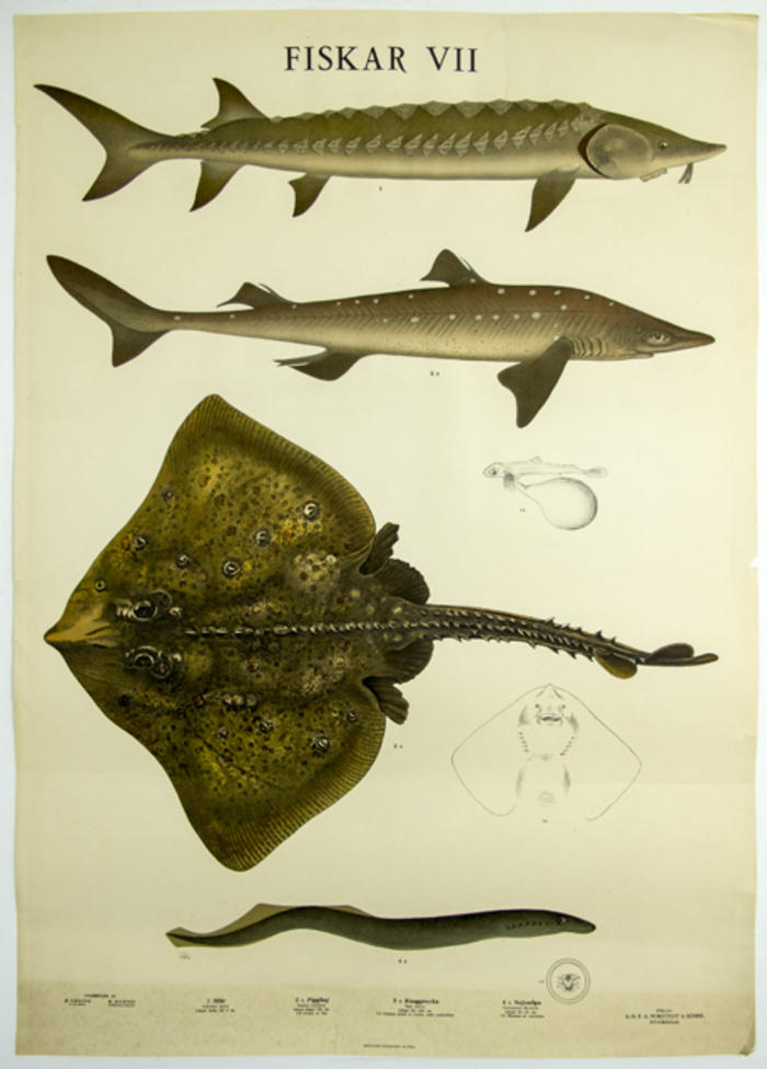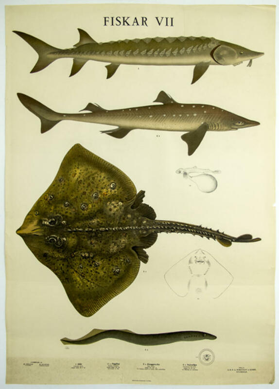 Plansch. Fiskar VII. Stör, Pigghaj, Knaggrocka, Nejonöga