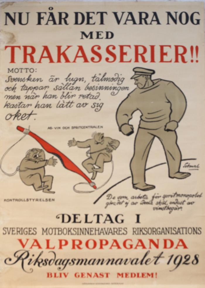 Affisch. Nu får det vara nog med trakasserier! Riksdagsmannavalet 1928. (Eigil Schwab).