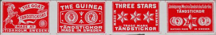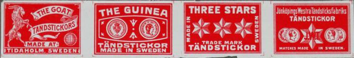 Tändsticksetiketter. The goat, The guinea, Three stars, Jönköpings Wästra Tändsticksfabriks tändstickor