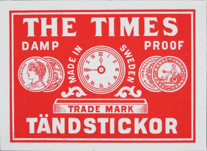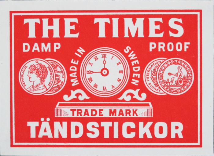 Tändsticksetikett. The Times tändstickor