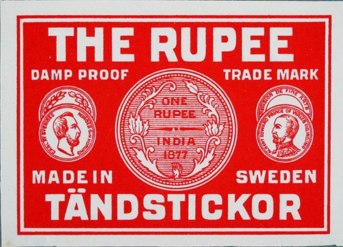 Tändsticksetikett. The Rupee. Swedish Matches.