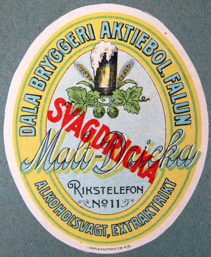 Etikett. Svagdricka. Svagdricka. Dala Bryggeri Aktiebol. Falun