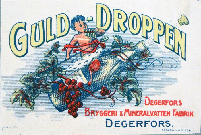 Etikett. Guld-droppen. Degerfors Bryggeri & Mineralvatten Fabrik