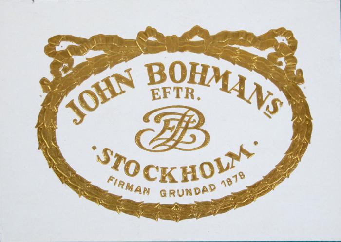 Etikett i relieftryck. John Bohmans Eftr, Stockholm