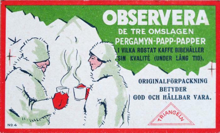 Etikett. Pergamyn-papp. Triangelns kaffe.